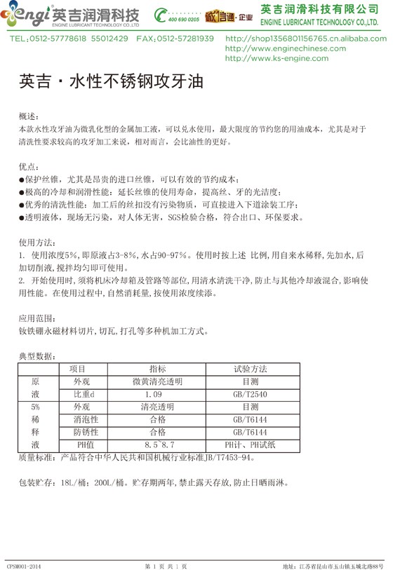 中等粘度,专为切削、攻丝、钻孔、扩孔、攻螺纹等工序,可轻松解决丝锥、刀具磨损严